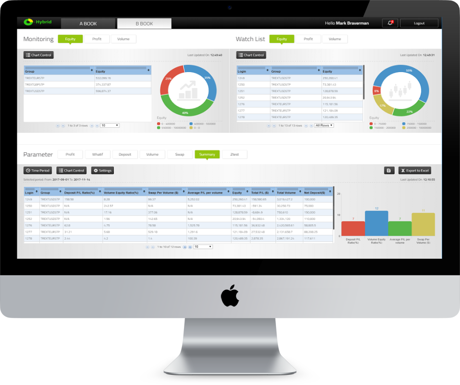 We have come with a software that will help the brokers to segregate the traders according to their book type based on various Risk Management parameters and useful monitoring tools backed up with sophisticated charts!